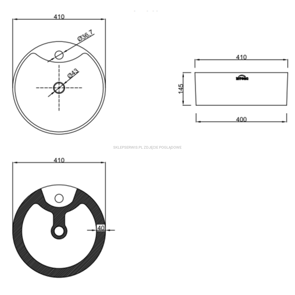 Wykończona z półką na baterię daje szerokie możliwości wyboru odpowiedniego kranu. Dostępna w dwóch rozmiarach: O 41 cm oraz O 47 cm pozwala dopasować model do metrażu i możliwości aranżacyjnych dla danej łazienki.