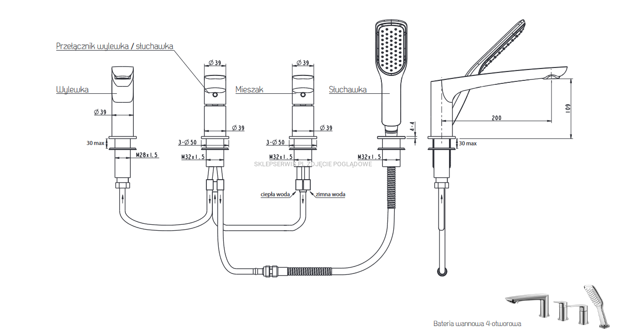 System wymiany węża natryskowego bez konieczności demontażu wanny