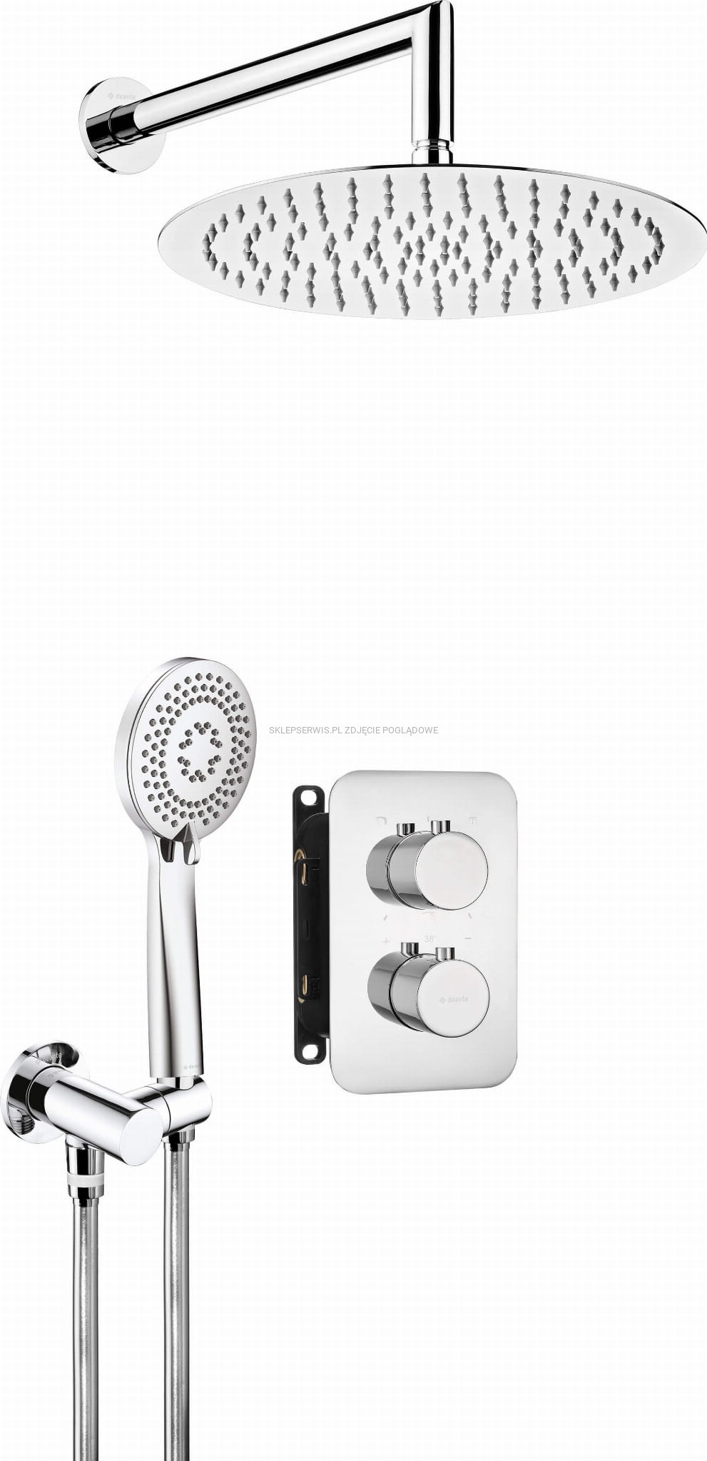 Zestaw prysznicowy podtynkowy posiada wszystkie niezbędne elementy do wyposażenia natrysku. Wysoka jakość użytych materiałów testowana wielokrotnie w warunkach laboratoryjnych zapewnia bezawaryjność. Nowoczesny design i eleganckie wykończenie przykuwają wzrok, a podtynkowy montaż powiększa optycznie przestrzeń. Minimalistyczne rozwiązanie sprawia, że zyskujesz miejsce na przykład na dodatkową półkę na kosmetyki lub wieszak. W rezultacie łatwiej i szybciej posprzątasz całe pomieszczenie. Zestaw posiada BOX termostatyczny, który chroni przed nagłymi skokami temperatury. Jest to szczególnie ważne, jeśli wśród użytkowników są dzieci lub osoby starsze, aby się nie poparzyły. Nie musisz także czekać aż zimna woda ogrzeje się do odpowiedniej temperatury, a w rezultacie oszczędzasz ten cenny zasób i pieniądze.