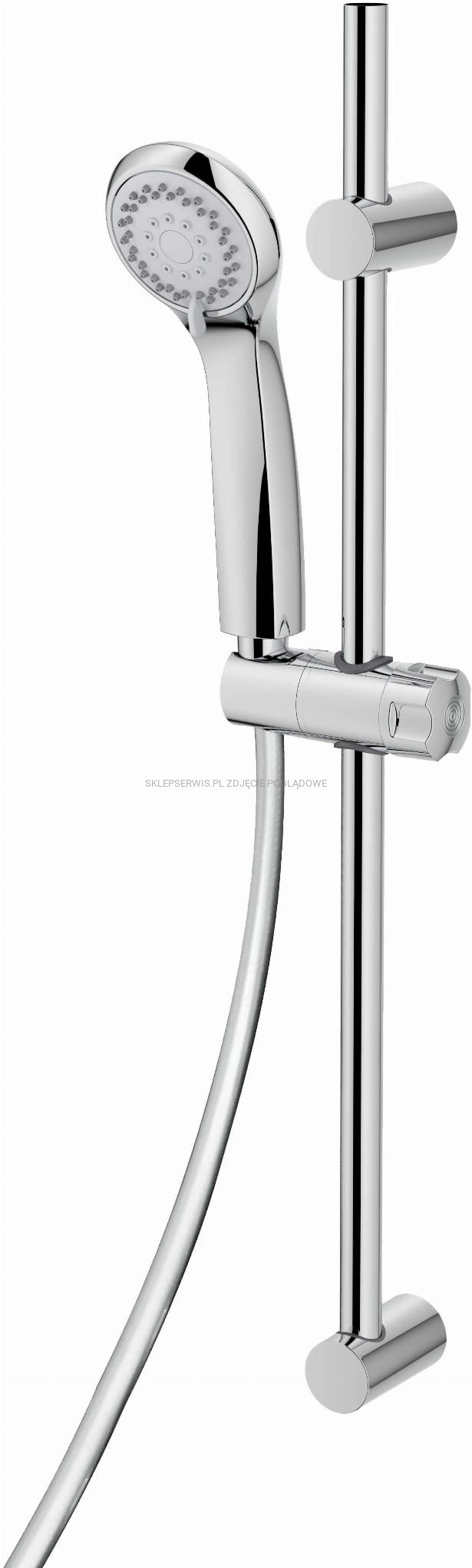 Kompletny zestaw prysznicowy został zaprojektowany w nowoczesnym stylu i będzie ozdobą każdej łazienki. Proste, klasyczne linie oraz estetyczne wykończenie sprawiają, że bezbłędnie się prezentuje w tradycyjnych, skandynawskich czy minimalistycznych wnętrzach. Użyte materiały, brak zakamarków oraz innowacyjny system przeciw osadowy Anti-Calc ułatwiają sprzątanie. Dzięki równomiernie rozstawionym dyszom kąpiący ma swobodę wyboru między trzema trybami pracy. Standardowy strumień to deszczowy, ale można także przełączyć się na inne tryby. To z kolei wpływa na niższe zużycie wody przy takim samym komforcie użytkownika. W zestawie znajduje się elegancki drążek z regulacją wysokości uchwytu.
