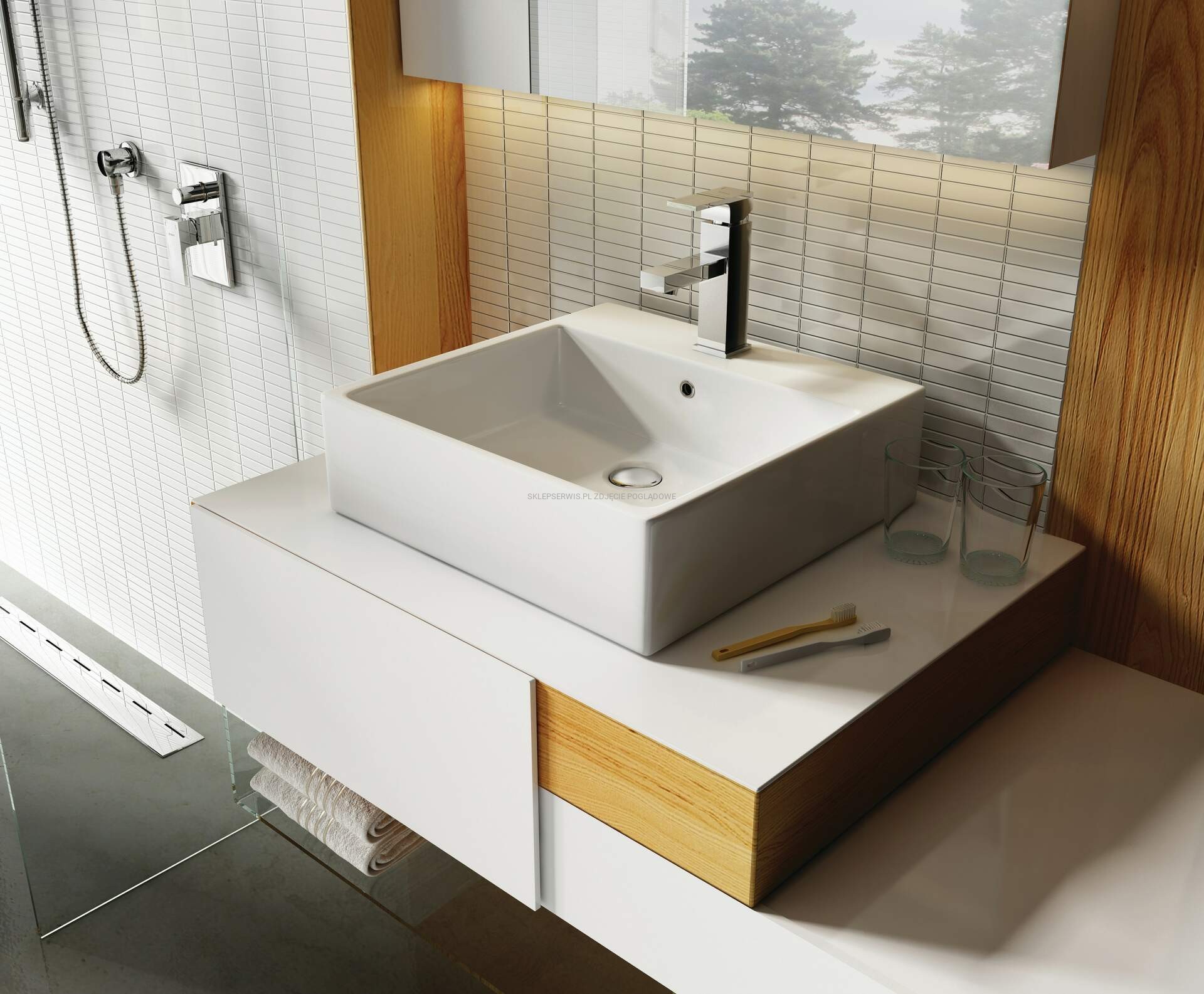 DEANTE Temisto Umywalka ceramiczna nablatowa/ścienna - 50x50 cm - biały - CDT_6U5S